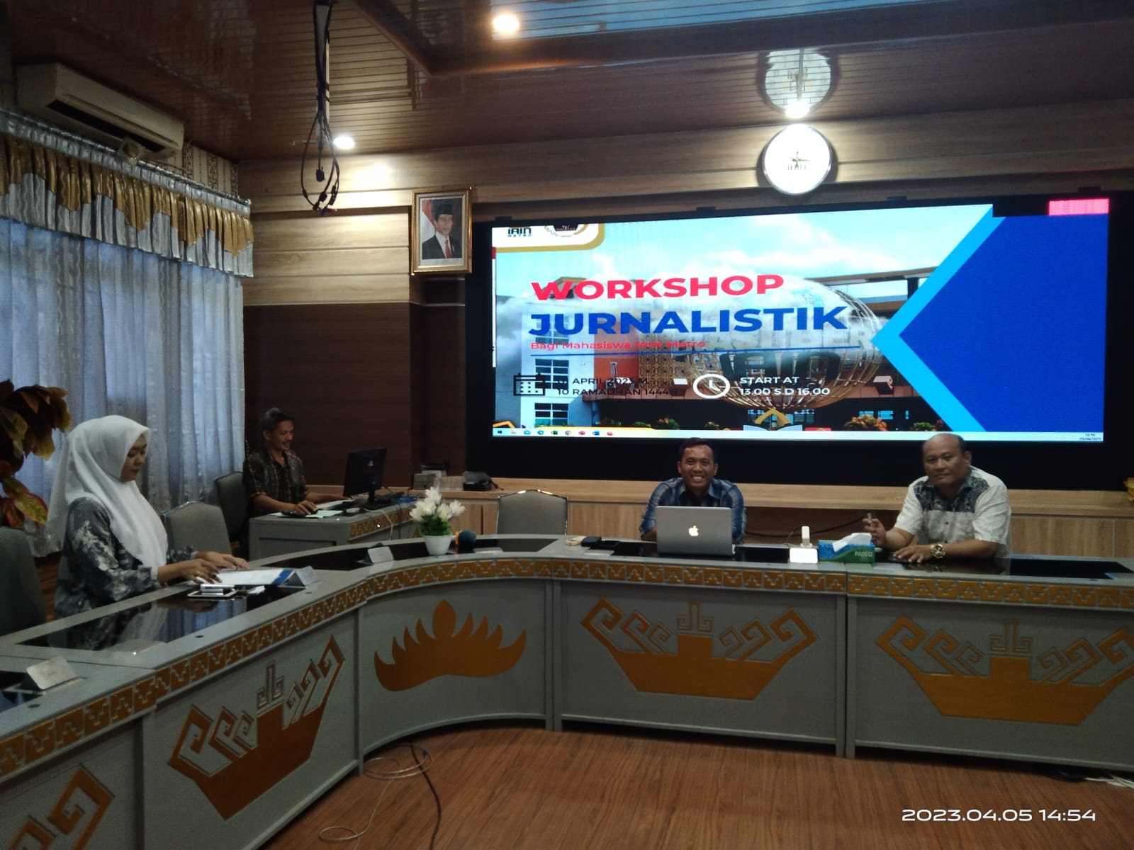 Penasihat Persatuan Wartawan Indonesia (PWI) Kota Metro dan juga penasihat SMSI Kota Metro, Abdul Wahab, menjadi pemateri dalam Workshop Jurnalistik Mahasiswa di Gedung Munaqosyah Institut Agama Islam Negeri (IAIN) Metro, Rabu, (5/4/2023).