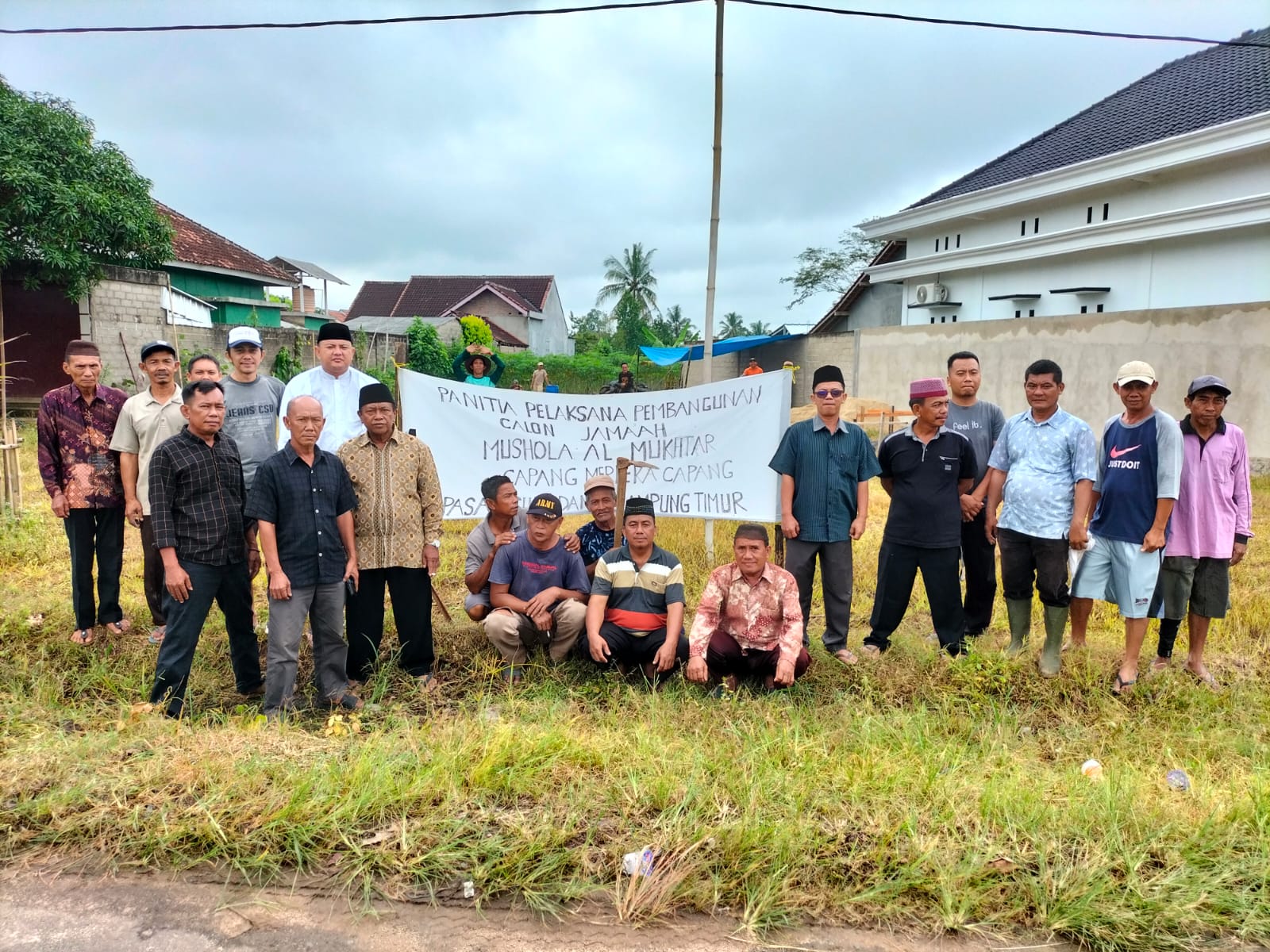 Lampung Timur, Peletakan batu pertama pembangunan Mushola Al Mukhtar dilakukan oleh Delly Solthoni Sangjaya Kepala Desa Pasar Sukadana Kecamatan Sukadana pada Senin, 1 Mei 2023 jam 08.00 WIB.