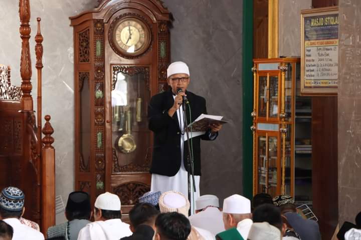 Bupati Lampung Tengah Musa Ahmad Bersama Pj Sekretaris Daerah Kabupaten Lampung Tengah Drs. Kusuma Riyadi, Para Staf Ahli, para Asisten dan Para Kepala Perangkat Daerah Pemerintah Kabupaten Lampung Tengah melaksanakan Shalat Idul Fitri 1445 H bertempat di Masjid Istiqlal Bandar jaya Barat Kecamatan Terbanggi Besar, Rabu 10 April 2024.