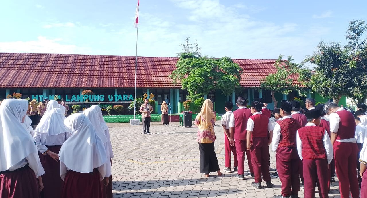 Lampung Utara, Metrodeadline – Madrasah Tsanawiyah Negeri (MTsN) 1 Lampung Utara (Lampura) menggelar ujian Penerimaan Murid Baru (PMB) tahun ajaran 2026/2027 jalur reguler. Ujian berlangsung di beberapa ruang kelas MTsN 1 Lampura. Sebelum pelaksanaan ujian, Kepala MTsN 1 Lampura, Untoro bersama dewan guru dan staf mengadakan apel yang dilaksanakan di lapangan madrasah. Sabtu (18/04/2026)