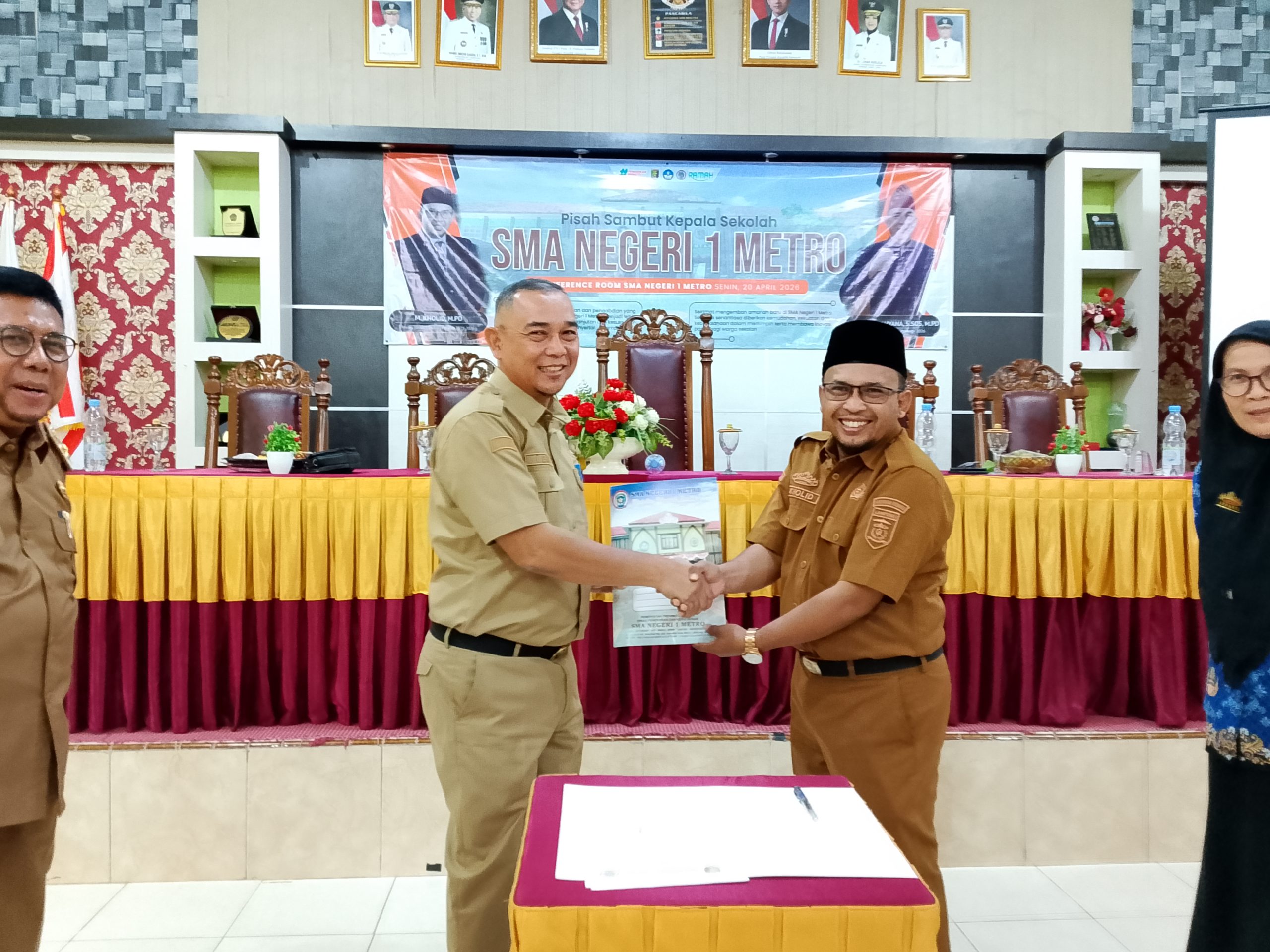 Metro, Metrodeadline.com – Suasana haru dan penuh kebersamaan mewarnai acara pisah sambut Kepala SMA Negeri 1 Metro, Senin (20/4/2026)