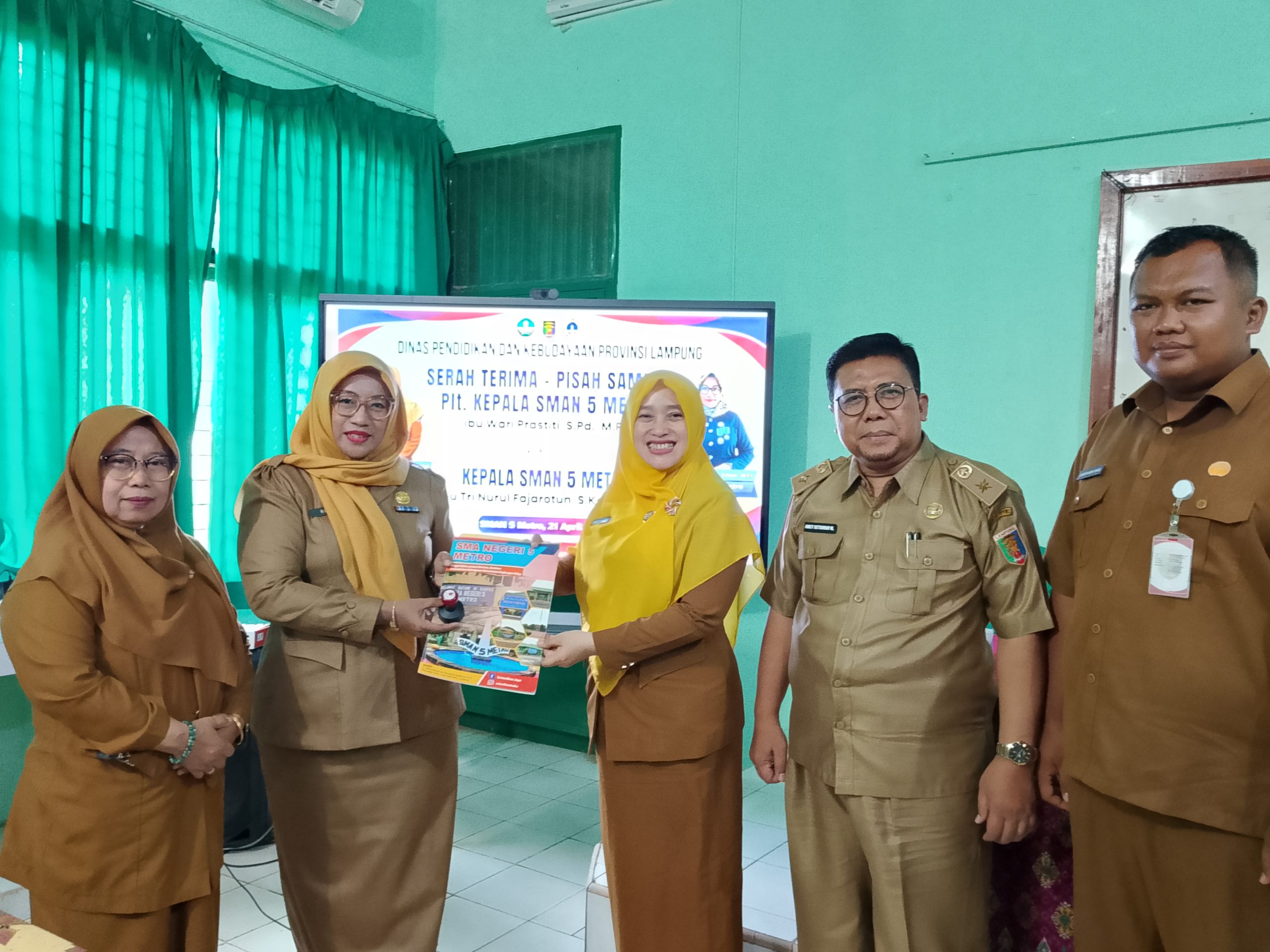 Metro, Metrodeadline.com — Serah terima jabatan Pelaksana Tugas (PLT) Kepala SMAN 5 Metro berlangsung dengan khidmat di lingkungan sekolah, menandai peralihan kepemimpinan dari Wari Prastiti, S.Pd., M.Pd. kepada Tri Nurul Fajarotun, S.Kom., M.T.I., Selasa (21/4/2026)