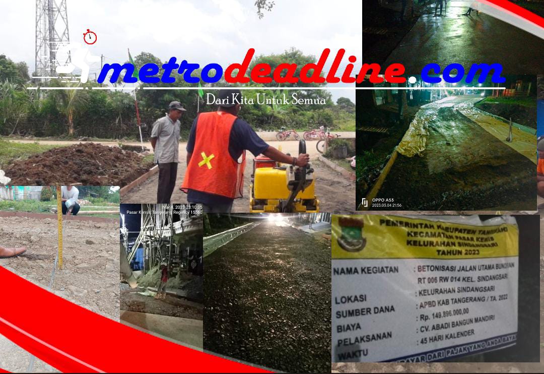 metrodeadline.com, Tangerang – Pengerjaan proyek betonisasi jalan utama bundaran Rt 006/014 Kelurahan Sindangsari Kecamatan Pasar Kemis Kabupaten Tangerang-Banten yang belum lama ini rampung di kerjakan diduga kuat Expayet dan sarat dengan kecurangan.
