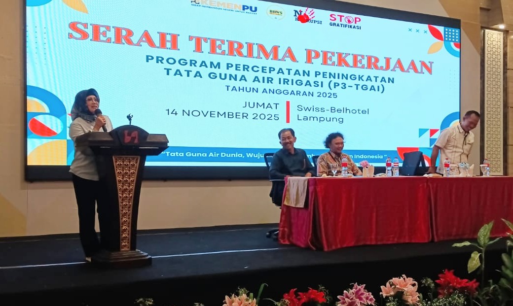 Lampung, Metrodeadline – Balai Besar Wilayah Sungai Mesuji Sekampung (BBWS-MS) melalui Satuan Kerja Operasi dan Pemeliharaan SDA (OP-SDA) I menyelenggarakan kegiatan Serah Terima Hasil Pekerjaan Program Percepatan Peningkatan Tata Guna Air Irigasi (P3-TGAI) Tahap I Tahun 2025 di Swiss-Belhotel Lampung, pada Jum’at (14/11).