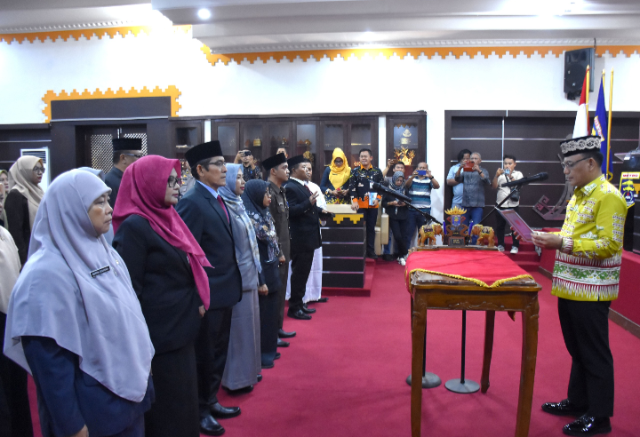 Pelantikan tersebut berlangsung di Aula Pemerintahan Kota Metro mencakup jabatan administrator, pengawas, kepala sekolah, serta pejabat fungsional.