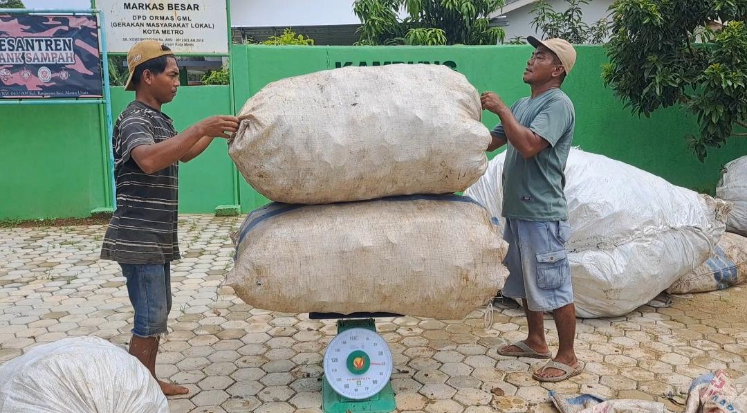 Geliat Pemberdayaan Pengolahan Pemanfaatan dan Pengendalian sampah yang dilakukan oleh para pegiat lingkungan dan pesantren Sampah Nusantara di Kampung Sampah Banjarsari berada dibilangan jalan kutilang rt, 043 rw 009 kelurahan banjarsari metro utara, bagaimana tidak dalam kurun waktu 3 bulan mampu menjual sampah sebanyak 3 ton terdiri dari berbagai jenis sampah, rabu/15/04/2026.